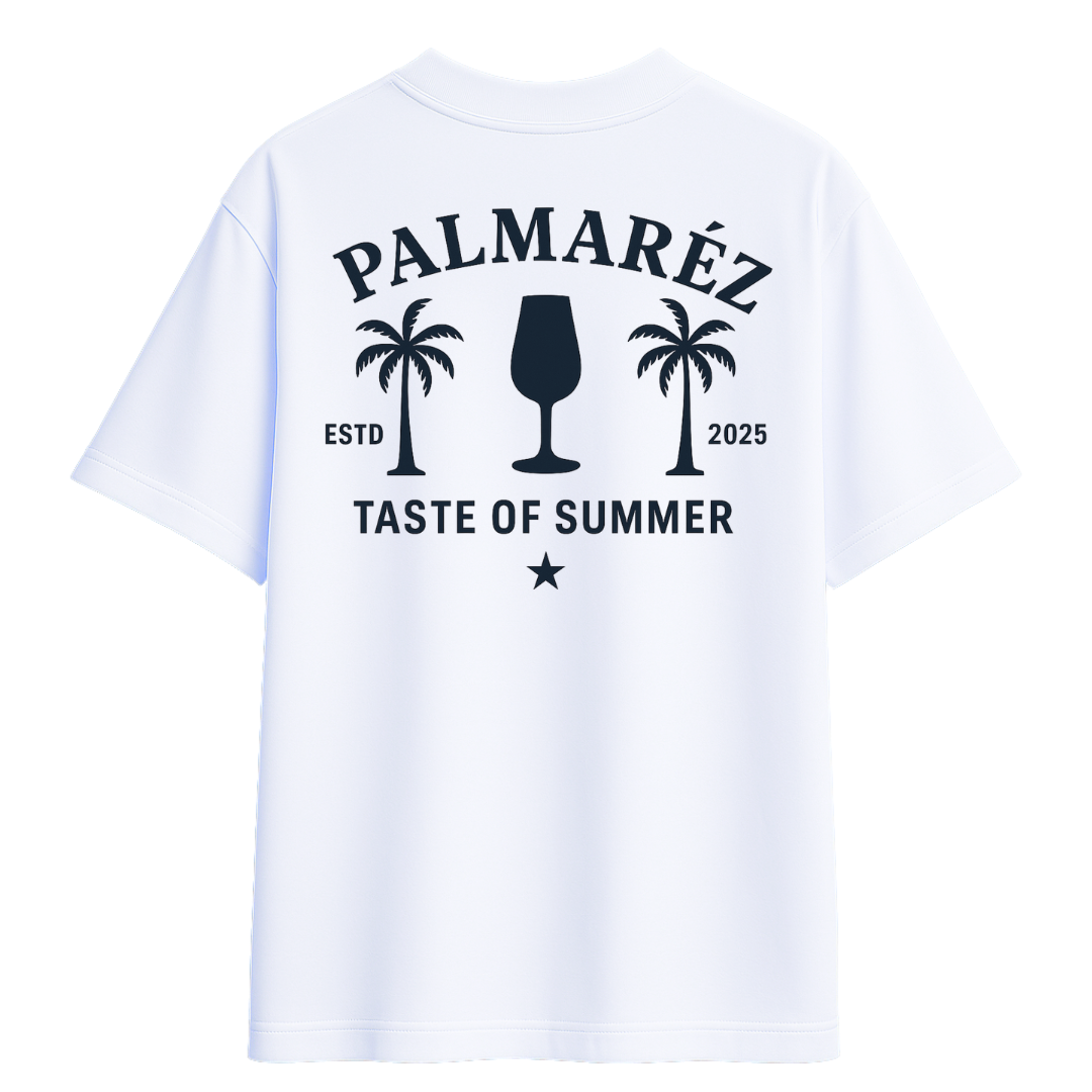 Sabor a salitre, siestas al sol y risas hasta la madrugada. La “Catador de Verano” es mucho más que una camiseta: es una declaración de intenciones para los que viven el verano como un arte. Con un corte oversize que mezcla frescura y actitud, esta pieza de edición limitada captura la esencia Palmaréz—atrevida, libre y con alma de chiringuito.