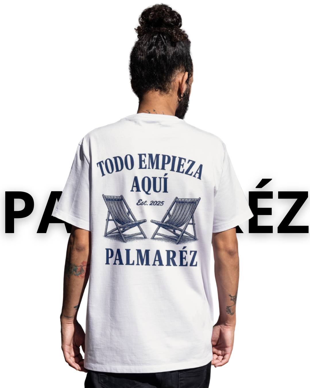 Esta camiseta celebra los comienzos sencillos, los momentos íntimos, los instantes donde surge la inspiración. En un mundo que va rápido, Palmaréz te invita a pausar… a sentarte en esa silla… y empezar algo nuevo.