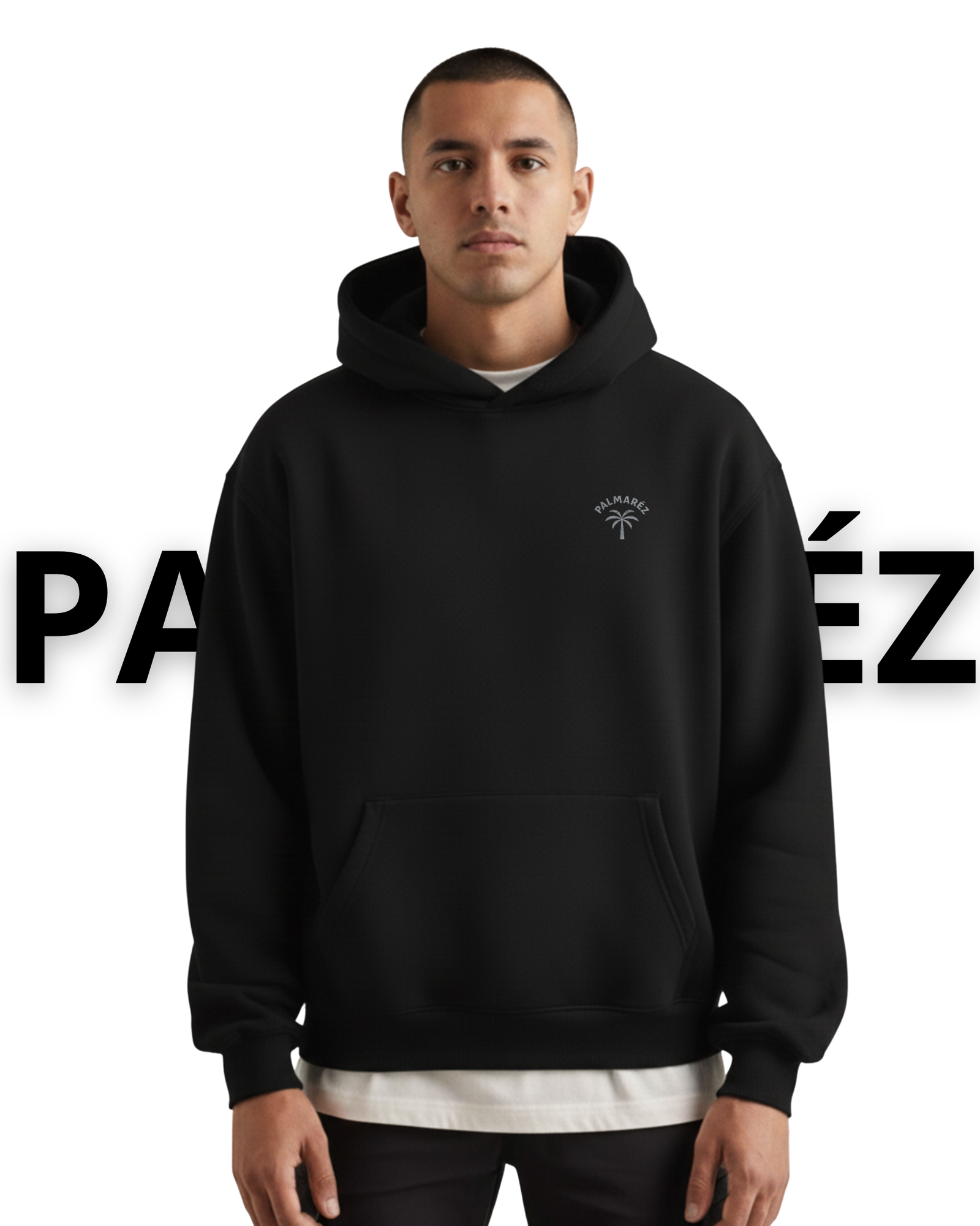 La sudadera Palmaréz “Mi propio camino” es una prenda unisex oversize con capucha y bolsillo canguro que combina estilo urbano y comodidad, diseñada para quienes quieren expresar autenticidad y orgullo en cada detalle; en la parte trasera luce una palmera como símbolo de raíces y libertad, con el nombre Palmaréz en la parte superior y la frase “Mi propio camino” en la inferior, mientras que en el frontal destaca el logo Palmaréz bordado que aporta un toque elegante y distintivo; confeccionada con cuello cruzado, puños y bajo en canalé 2×1 con licra para un ajuste duradero, felpa perchada interior que ofrece suavidad y abrigo, y bolsillo canguro funcional, está disponible desde la talla S hasta la XXL; su composición de materiales de alta calidad incluye 73% algodón, 20% poliéster reciclado y 7% viscosa en la versión GM, además de 80% algodón y 20% poliéster reciclado con un gramaje aproximado de 320 g/m², lo que garantiza resistencia, confort y un acabado premium pensado para acompañarte en tu propio camino.